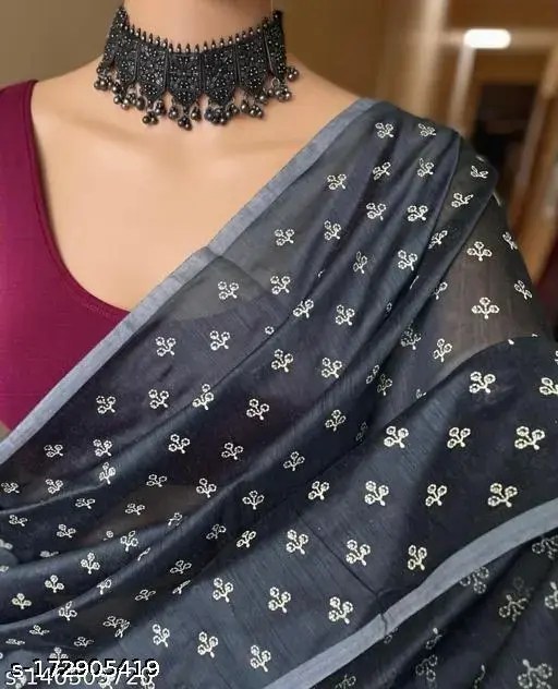 Embrace sophistication with this Chanderi Cotton Grey Jacquard Saree, featuring a graceful printed design. Paired with a solid satin silk blouse piece, it’s perfect for any occasion. Free Size (Saree: 5.5m, Blouse: 0.8m). Made in India.
