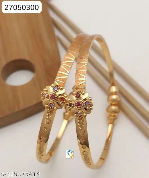 - Name : Designer micro gold plated multi diamond flower adjustable kadli bangle
