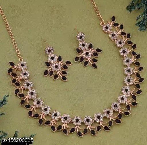Elevate your ethnic look with this elegant Rose Gold Plated Necklace Set featuring Black Kundan work and shimmering Cubic Zirconia (American Diamonds). This beautifully crafted set includes a necklace and matching earrings, making it a perfect accessory for festive occasions, weddings, parties, and traditional functions.